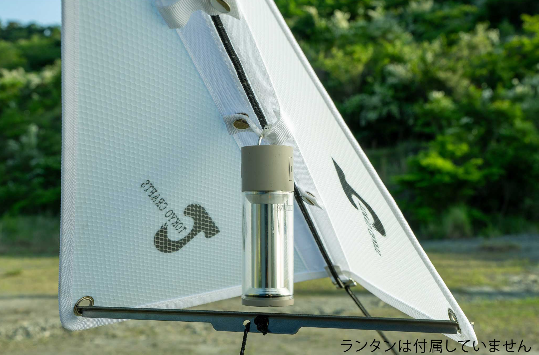 シェードがランタンを覆い、雨や風をブロック。取り付け位置は3段階で調整でき、さまざまなサイズのランタンに対応します。雨天時の快適性をサポートしつつ、ギアの雰囲気も崩さないデザインです。