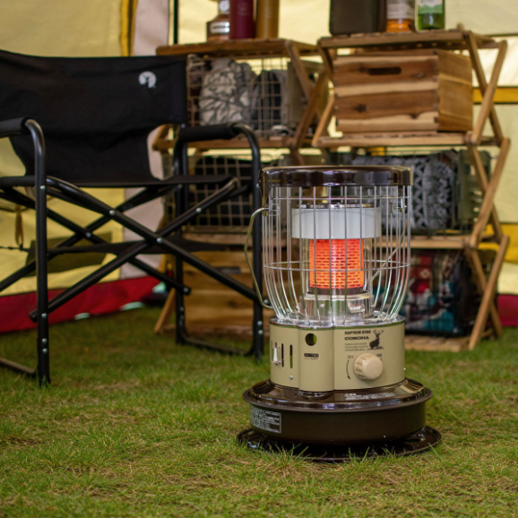 電源サイトでなくても使えて、しっかり暖かい暖房として注目されているのが、『キャプテンスタッグ×コロナ』の『石油ストーブ(SZ-32CS-CT)』です。