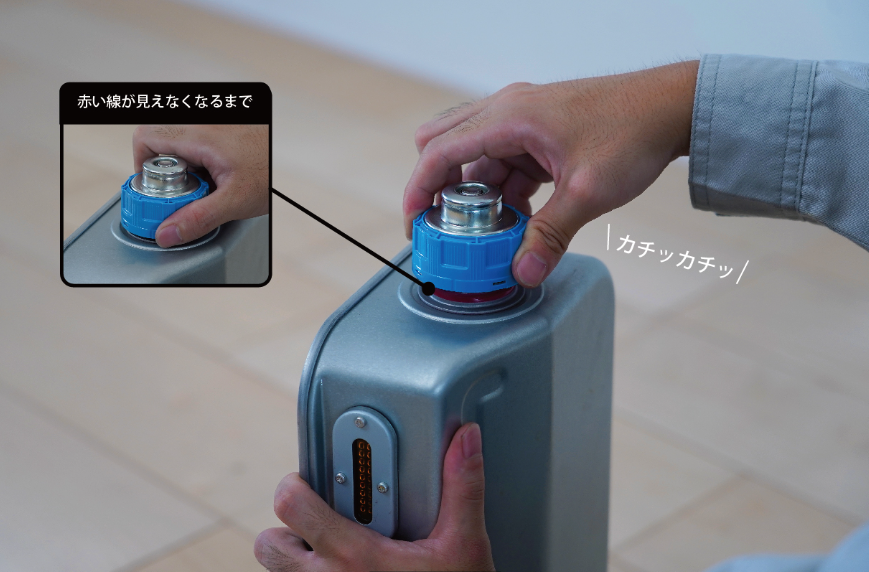 タンクのフタがしっかり締まったことを確認できる「楽²ロック」を採用しています。一定の力で締めると、それ以上は空回りする構造になっていて、締めすぎを防いでくれます。給油後、「これで大丈夫かな?」と少し不安になること、ありますよね。